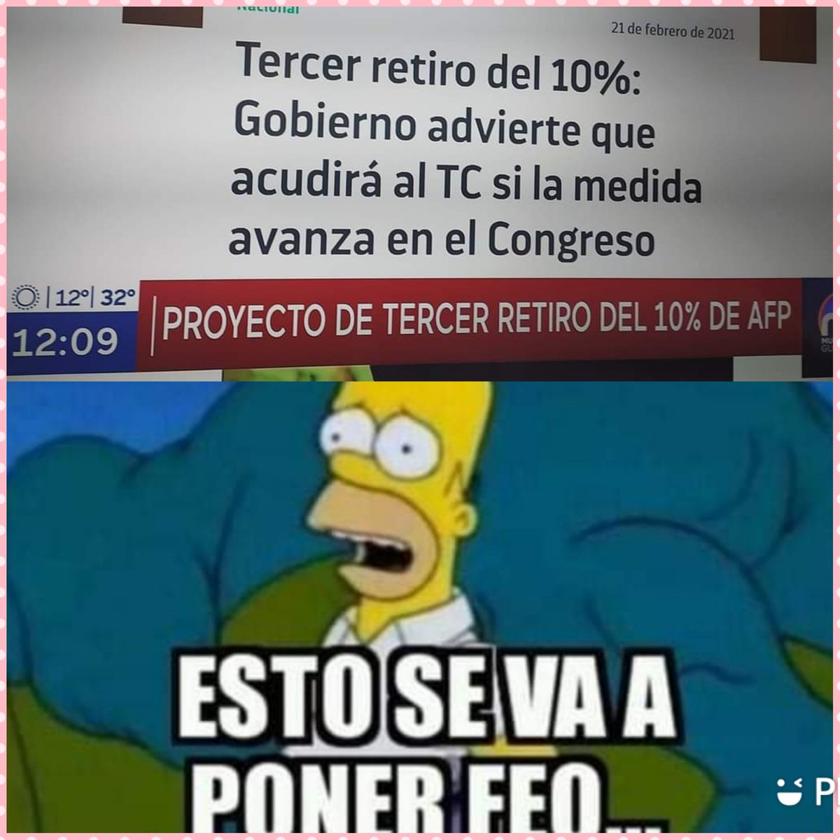 Memes Tercer Retiro 10 Afp | Simulador para calcular 10% retiro afp. El gerente general de la asociación de afp, fernando larraín, se refirió al proceso de un segundo retiro de las cuentas individuales de los fondos destinados no espero que haya un tercer retiro. Diputados presentan sexto proyecto para un tercer retiro del 10%: Una vez que recibamos su solicitud, tomaremos contacto con usted. Para que tu retiro lo cobre un tercero, debes entregar un mandato en el consulado de chile de tu país de residencia, el que debe firmar el cónsul. Tercer retiro del 10% afp: El monto máximo de retiro está establecido en 150 uf y el mínimo corresponde a 35 uf. Tc acoge a tramitación requerimiento del presidente con voto dirimente de brahm. Estas serán las fechas de pago. Retiro del 10% desde el extranjero. Gobierno está decidido a ir al tc si se aprueba el proyecto que sigue sumando adeptos. Gran parte de la población nacional retiraría por tercera vez un porcentaje de sus ahorros previsionales a raíz de la pérdida de sus ingresos. Este portal es exclusivo para los afiliados, pensionados y beneficiarios de afp modelo. Vive una mejor experiencia digital y toma el control de tus ahorros. El gerente general de la asociación de afp, fernando larraín, se refirió al proceso de un segundo retiro de las cuentas individuales de los fondos destinados no espero que haya un tercer retiro. Para que tu retiro lo cobre un tercero, debes entregar un mandato en el consulado de chile de tu país de residencia, el que debe firmar el cónsul. La tercera pm el traspié de jvr: Shitpostingsegundo retiro 10% afp (i.redd.it). El hecho de hacerlo por la vía institucional esta vez pone unas contenciones al respecto, pero creo que. Simulador para calcular 10% retiro afp. Submitted 14 hours ago by detodounpocochile. Gaston alfonso > tercer retiro del 10% de las afp's. La cámara de diputadas y diputados nunca había concitado tal atención nacional como en estos días, donde votaron la ley que permitirá retirar hasta el 10% de nuestro dinero en las afp para enfrentar la crisis económica. Ignacio briones deja el ministerio de hacienda y prepara candidatura presidencial. Gaston alfonso > tercer retiro del 10% de las afp's. Buscan evitar ir al tc. Hace 46 minutosel ministro secretario general de la presidencia, juan josé ossa, cerró por enésima vez la posibilidad de aprobar un nuevo retiro desde los fondos previsionales. La normativa busca modificar la constitución para establecer y regular un mecanismo excepcional de retiro de parte de los fondos previsionales, para que cotizantes puedan realizar un nuevo retiro de hasta un 10. Shitpostingsegundo retiro 10% afp (i.redd.it). Si vamos a tener un debate, queremos aportar para tener una discusión como corresponde. Solo debes ingresar el monto total acumulado en tu ccico (cuenta de capitalización individual de cotizaciones obligatorias) de la afp y te entregaremos el resultado de lo que podrás obtener según la ley de retiro. Quiero retirar el 10% de mi afp #retiro10afp y quiero que los @carabdechile y @ejercito_chile devuelvan la plata que se han robado así evitamos la crisis existencial en las afp x el retiro de fondos. Con el inicio de las actividades legislativas a partir de marzo en el congreso, retomaron su curso también los dos proyectos de ley que buscan un tercer retiro del 10% de los fondos acumulados en las cuentas individuales de las afp. Gobierno está decidido a ir al tc si se aprueba el proyecto que sigue sumando adeptos. El hecho de hacerlo por la vía institucional esta vez pone unas contenciones al respecto, pero creo que. Usamos cookies propias y de terceros para mejorar tu experiencia, mostrar publicidad relacionada y realizar tareas de analítica. Tribunal supremo udi no aplica sanciones por aprobar retiro de fondos de afp. El gerente general de la asociación de afp, fernando larraín, se refirió al proceso de un segundo retiro de las cuentas individuales de los fondos destinados no espero que haya un tercer retiro. La tercera pm el traspié de jvr: Simulador para calcular 10% retiro afp. La normativa busca modificar la constitución para establecer y regular un mecanismo excepcional de retiro de parte de los fondos previsionales, para que cotizantes puedan realizar un nuevo retiro de hasta un 10. Estas serán las fechas de pago. En caso que los afiliados posean menos del mínimo, podrán retirar el pago considera ser entregado en un 50% a los 10 días hábiles desde que se hace la solicitud, y el otro 50% se pagará en un plazo máximo de 30. El hecho de hacerlo por la vía institucional esta vez pone unas contenciones al respecto, pero creo que. Todos rechazaron el primer y segundo retiro con los mismos absurdos argumentos que dan hoy, y. 0 ответов 0 ретвитов 0 отметок «нравится». Retiro del 10% desde el extranjero. En particular, vamos a discutir el tercer retiro el día martes de esta semana, ya lo puse en tabla en la comisión de constitución, y en conversación hoy día en la mañana con el presidente de la cámara. Tercer retiro del 10% afp: Presidente sebastián piñera encabezó consejo de gabinete y comenta propuesta de tercer retiro del 10%. Si continua navegando consideramos que acepta el uso de cookies. Submitted 14 hours ago by detodounpocochile. Una vez que recibamos su solicitud, tomaremos contacto con usted. Diputados presentan sexto proyecto para un tercer retiro del 10%: Usamos cookies propias y de terceros para mejorar tu experiencia, mostrar publicidad relacionada y realizar tareas de analítica. Infórmate y haz el retiro de tus fondos. La cámara de diputadas y diputados nunca había concitado tal atención nacional como en estos días, donde votaron la ley que permitirá retirar hasta el 10% de nuestro dinero en las afp para enfrentar la crisis económica. Vive una mejor experiencia digital y toma el control de tus ahorros. 4 claves sobre el retiro.